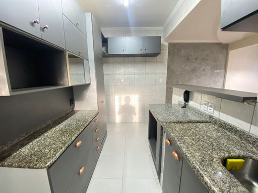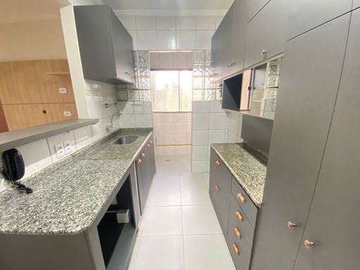 Apartamento com 03 quartos, sendo 01 suíte, sala ampla para dois ambientes, cozinha americana, banheiro social, área de serviço e 01 vaga de garagem.