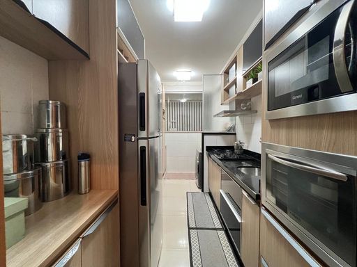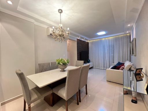 Distribuído por: sala de estar, sala de jantar, sacada, cozinha e área de serviço. Na área íntima: 3 quartos sendo uma suíte e um banheiro social.