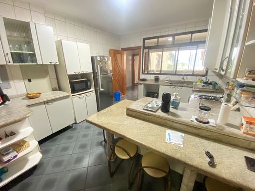 A cozinha é ampla, com bancadas em granito e totalmente equipada com armários planejados, além de despensa, lavanderia, hobby box e 03 vagas de garagem.