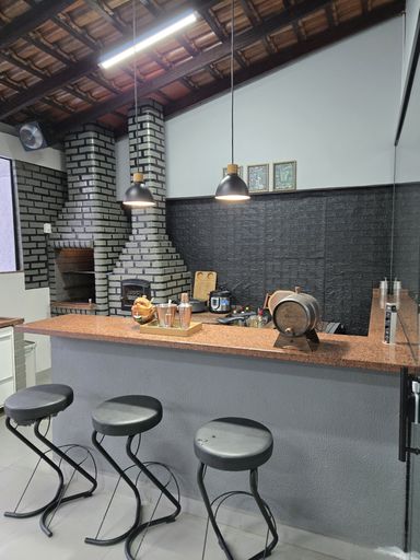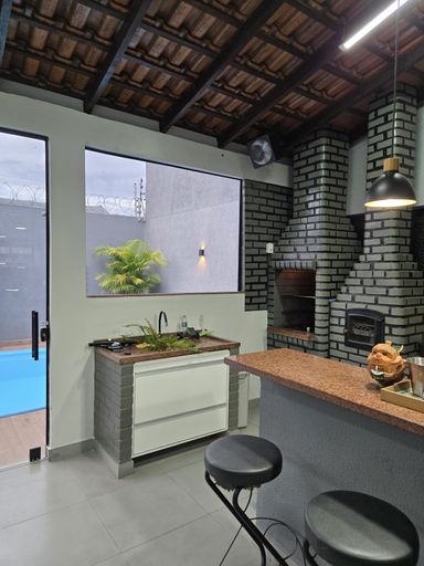 3 quartos, sendo 1 suíte, Sala ampla e aconchegante, 2 banheiros, Cozinha gourmet, perfeita para receber amigos e família, Piscina e Garagem para 2 carros.