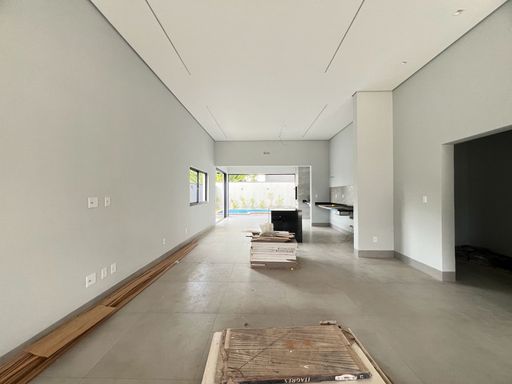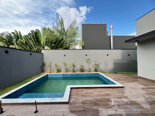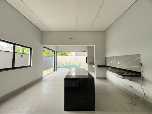 Distribuída em 03 suítes sendo 1 máster com closet, escritório, sala ampla com pé direito duplo, cozinha integrada com ilha para cooktop, piscina com prainha e iluminação em LED, banheiro para apoio, despensa, área de serviço e garagem.