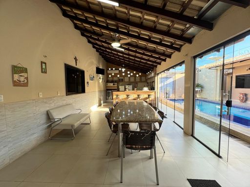 Casa térrea que une espaço e conforto em cada detalhe. São 05 dormitórios, sendo 03 suítes bem distribuídas, além de uma sala de estar para dois ambientes com lavabo, proporcionando amplitude, iluminação natural e o espaço ideal para reunir família e amigos. A área gourmet completa é integrada à piscina, criando um ambiente perfeito para momentos de lazer. Conta ainda com 01 suíte anexa à área gourmet com churrasqueira e lavanderia funcional, trazendo mais praticidade ao dia a dia. O condomínio oferece portaria 24 horas e uma completa infraestrutura de lazer: piscina, salão de festas, academia, playground e belos jardins, garantindo segurança, bem-estar e qualidade de vida. Entre em contato e agende sua visita!