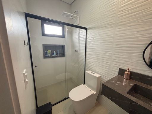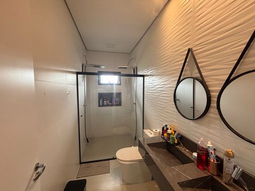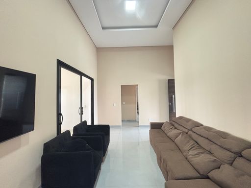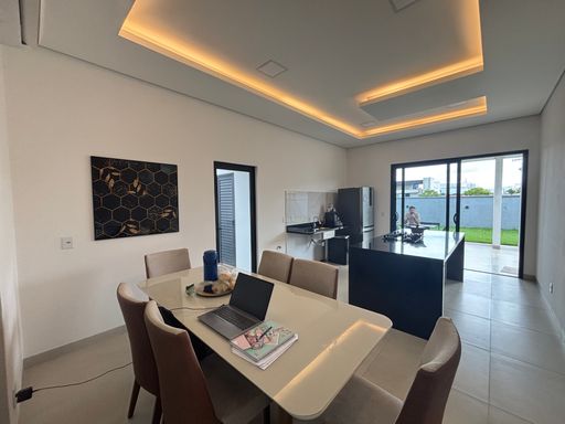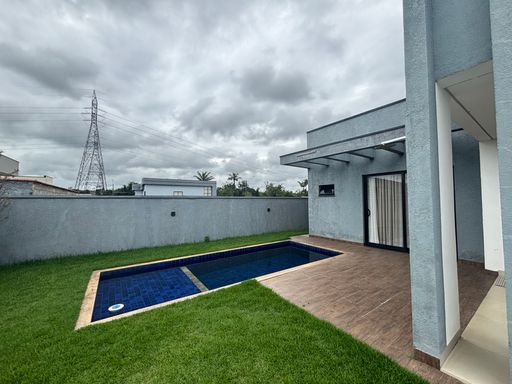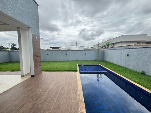 casa com 3 suítes sendo uma master com closet, sala de estar, sala de jantar/cozinha, Área goumert com churrasqueira, piscina e 2 vagas de garagem.