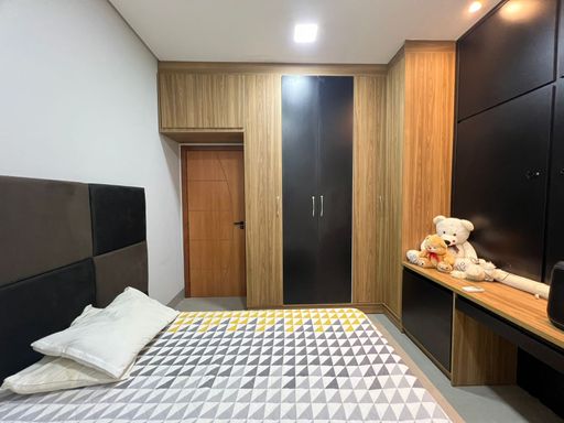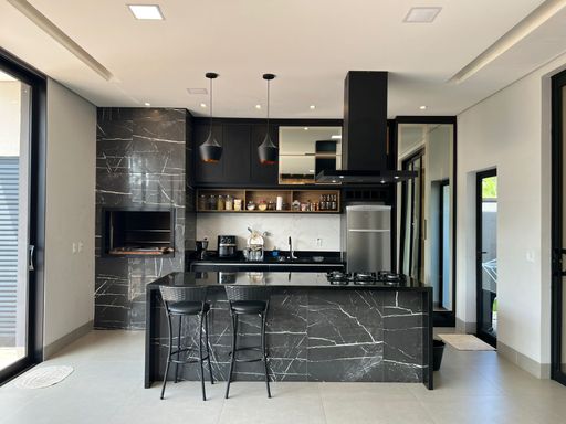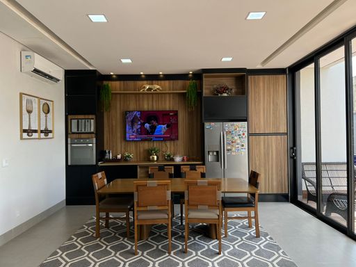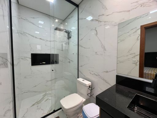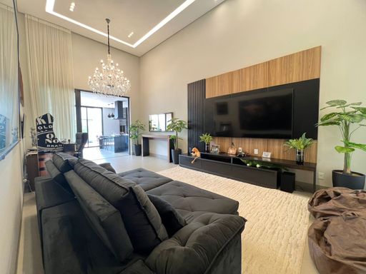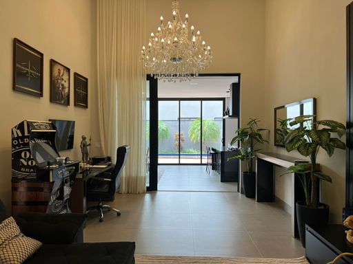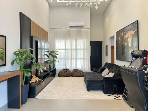 A casa conta com 03 suítes, sala com pé-direito alto, projeto luminotécnico, esquadrias em alumínio e ambientes integrados, proporcionando amplitude e elegância.