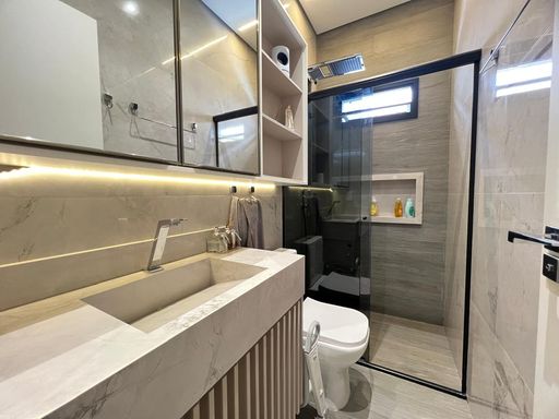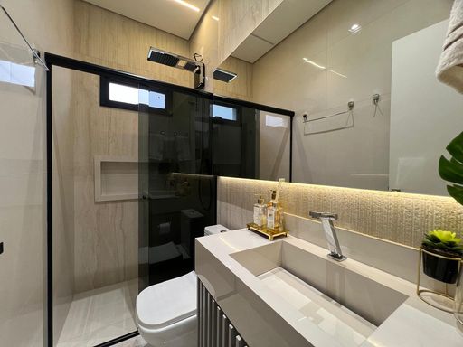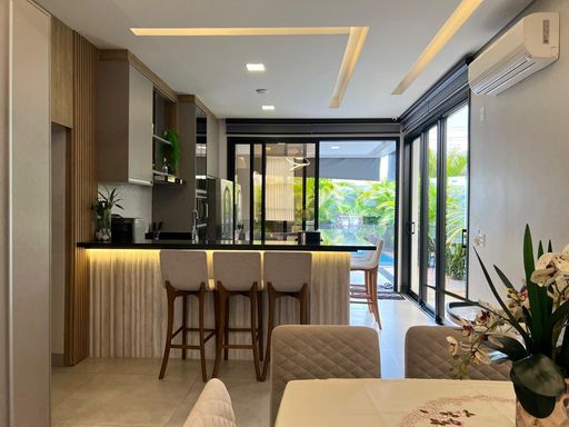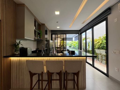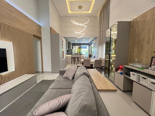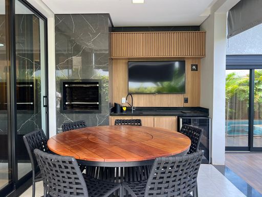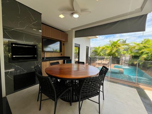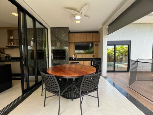 Excelente casa térrea no Condomínio Verana, totalmente mobiliada, com 3 suítes, além de escritório, sala de estar integrada, cozinha planejada e um amplo espaço gourmet com churrasqueira e piscina com aquecimento.
