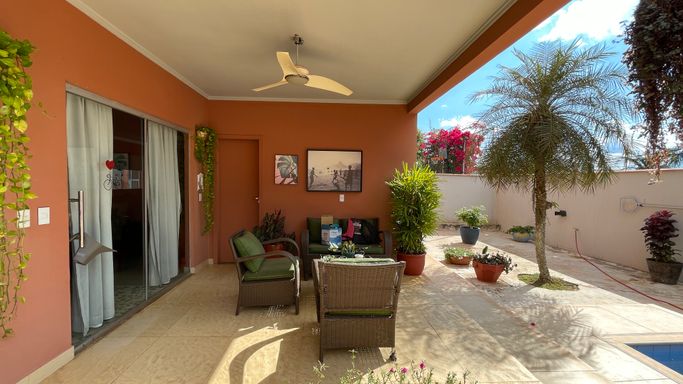 Excelente sobrado no Cond Jardim das Palmeiras, contendo na parte superior, 3 suítes. Parte inferior, sala para 2 ambientes, escritório, lavabo, cozinha tipo americana ampla, despensa, lavanderia, academia, área gourmet, wc externo, piscina, 2 vagas cobertas.