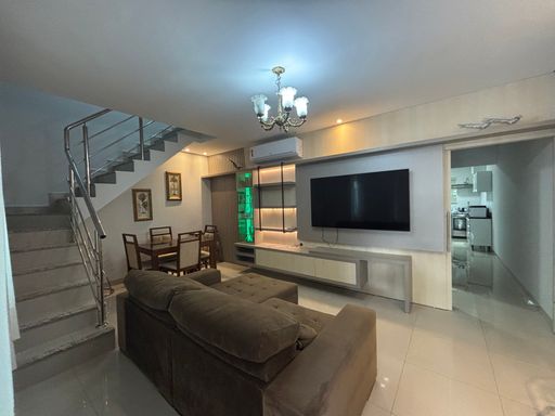 sobrado com 3 suítes, sala de estar/jantar, cozinha, lavabo, churrasqueira, 2 vagas de garagem.