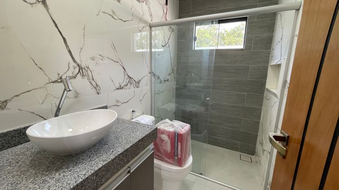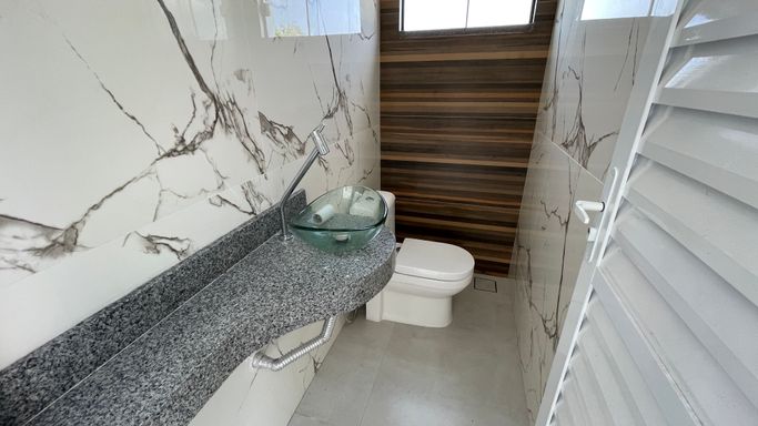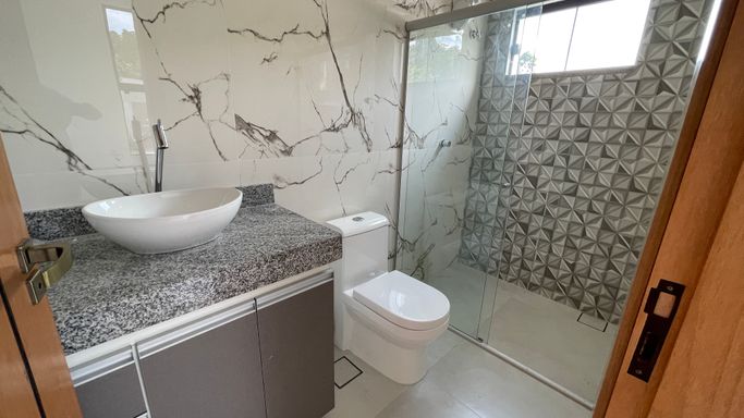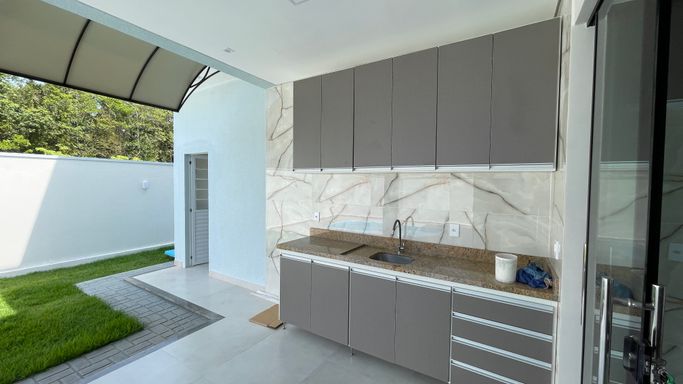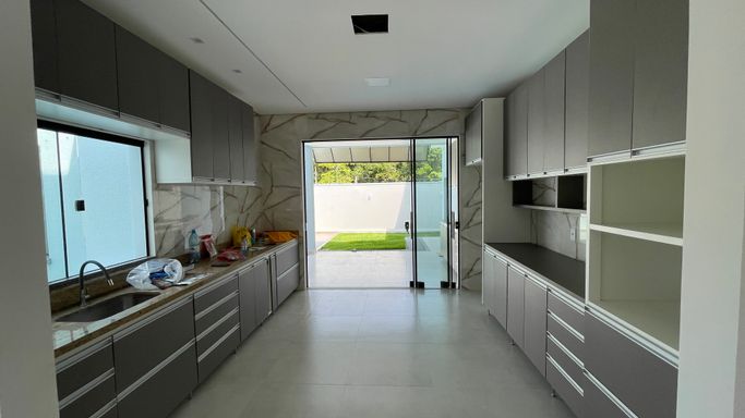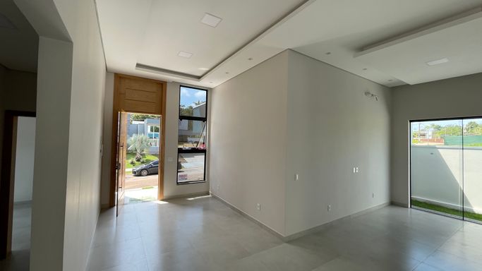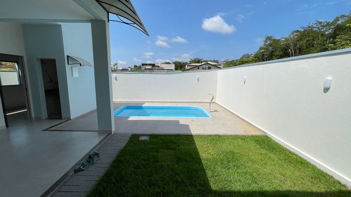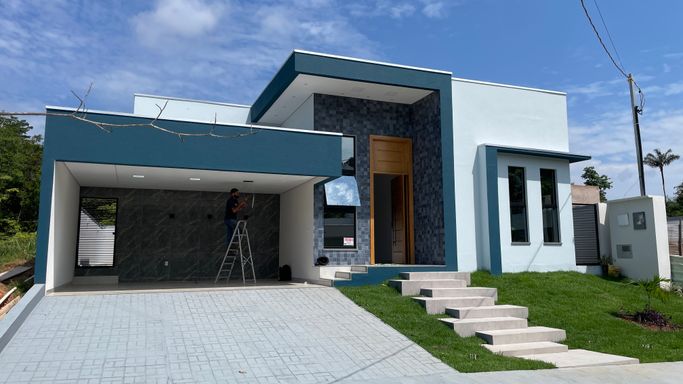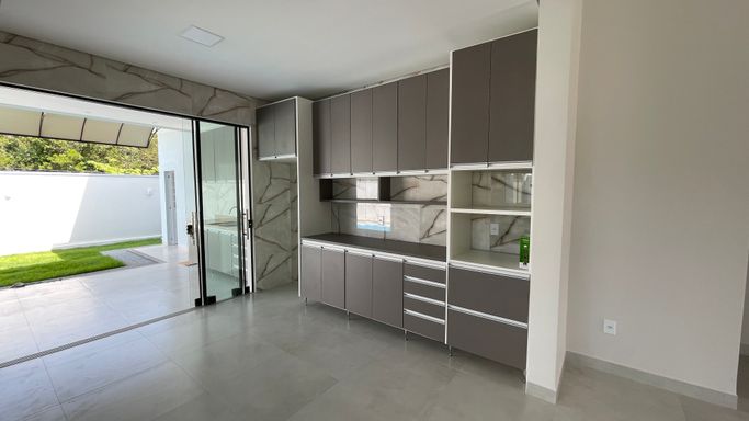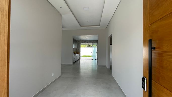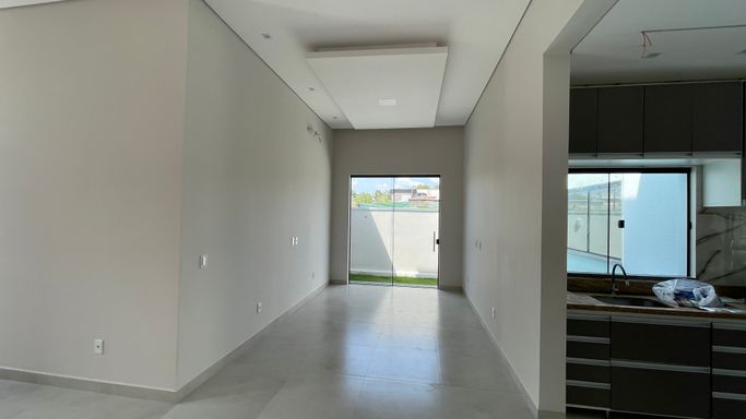 Excelente casa térrea recém construída contendo 3 suítes, sala para 2 ambientes, cozinha com planejados, área gourmet, 1 escritório, wc, lavanderia, piscina, e garagem para 2 vagas.