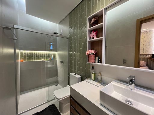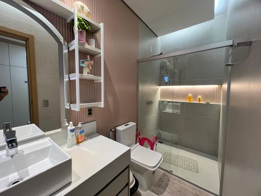 A casa possuí aquecimento de água por boiler (em torneiras e chuveiros), pisos e revestimentos Portobello, e móveis planejados Plantec.