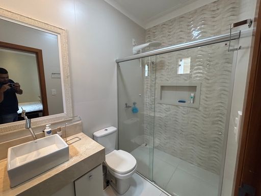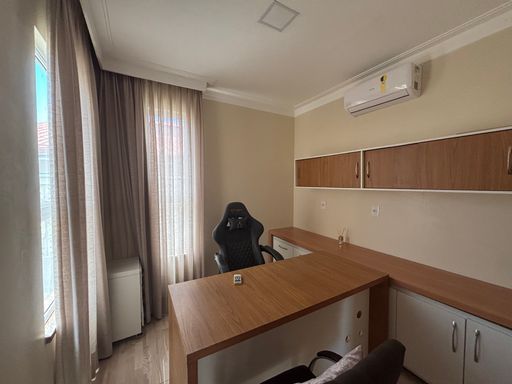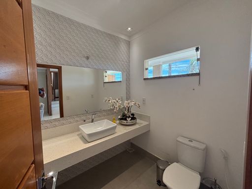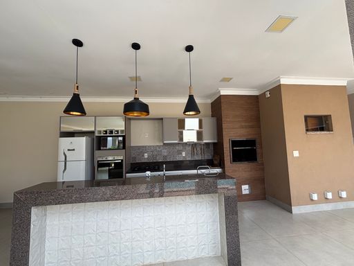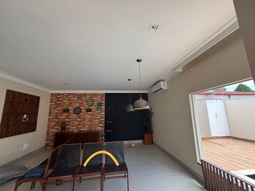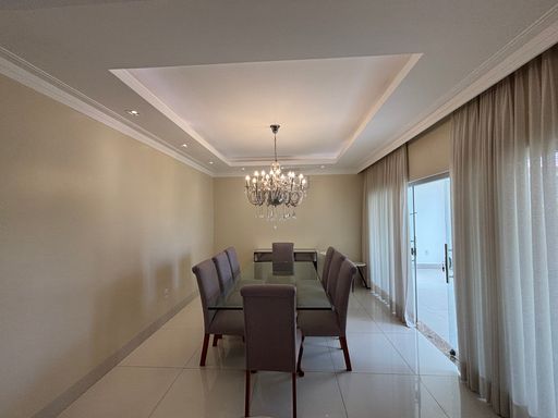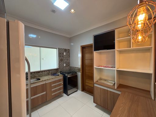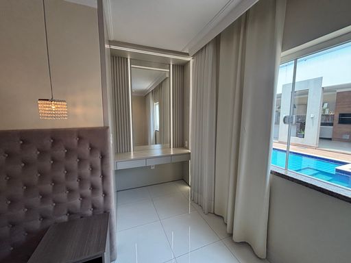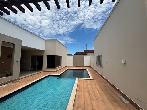 Casa térrea mobiliada casa com 4 quartos sendo 2 suítes, lavabo, sala de estar, sala de jantar, cozinha, 4 vagas de garagem e piscina.