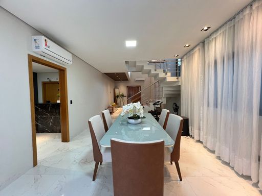 Sobrado 03 quartos sendo 01 suíte master, 04 vagas de garagem. Permanece no imóvel planejados + centrais de ar.