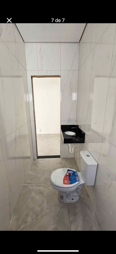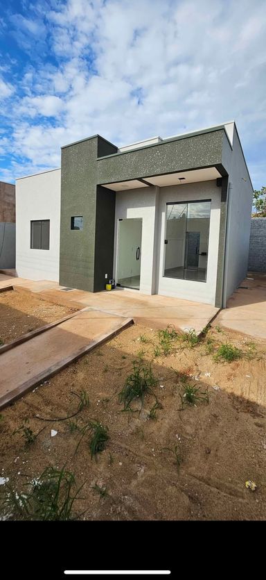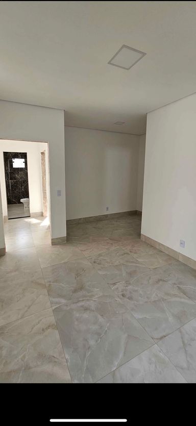Possui dois quartos, sendo uma suíte com closet aberto, piso em porcelanato, forro de gesso com iluminação em LED embutida e telhado embutido. Banheiros com nichos decorativos e área externa com gramado na frente.